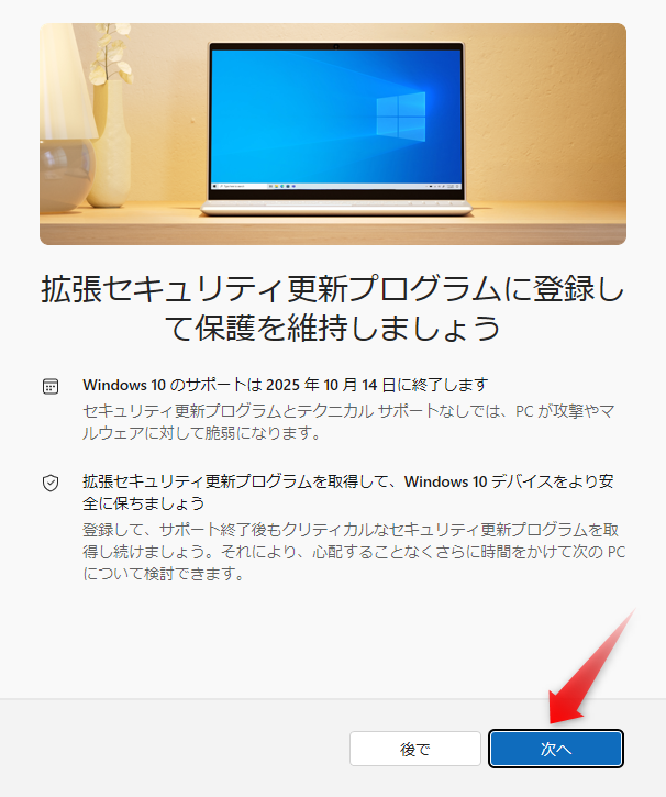 Windows10のサポート期限(2025年10月14日)を1年間延長できる無償セキュリティ延長プログラム(ESU)
