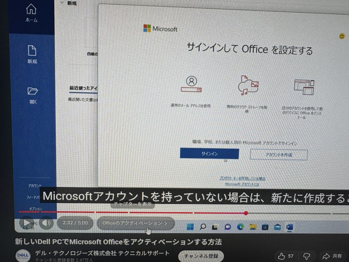YouTubeでアクティベーションの方法があるようなので見てみると、マイクロソフトアカウントありきの動画でした。