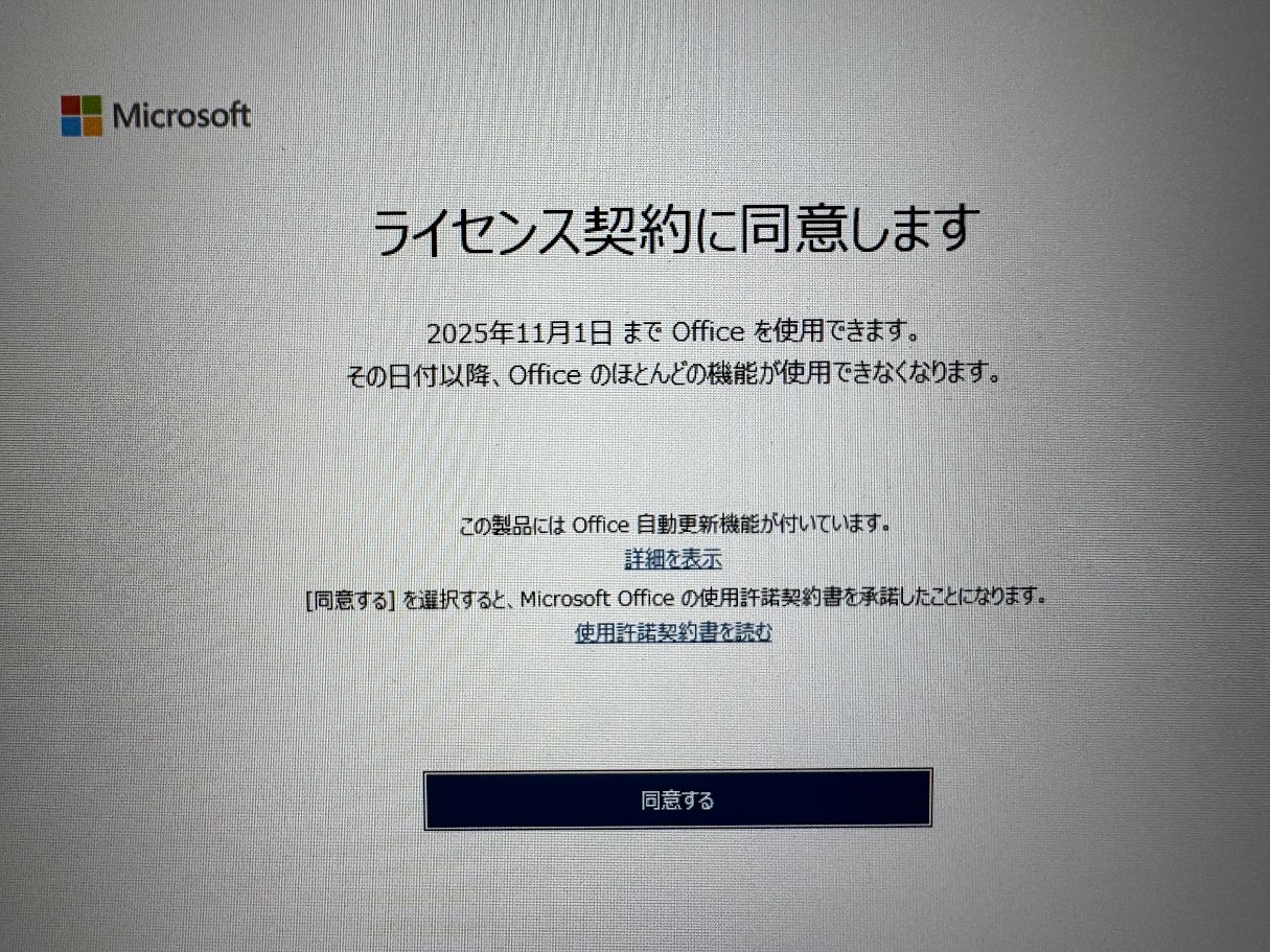 そして、試しにWordを起動してみると、更に同意画面がでました。