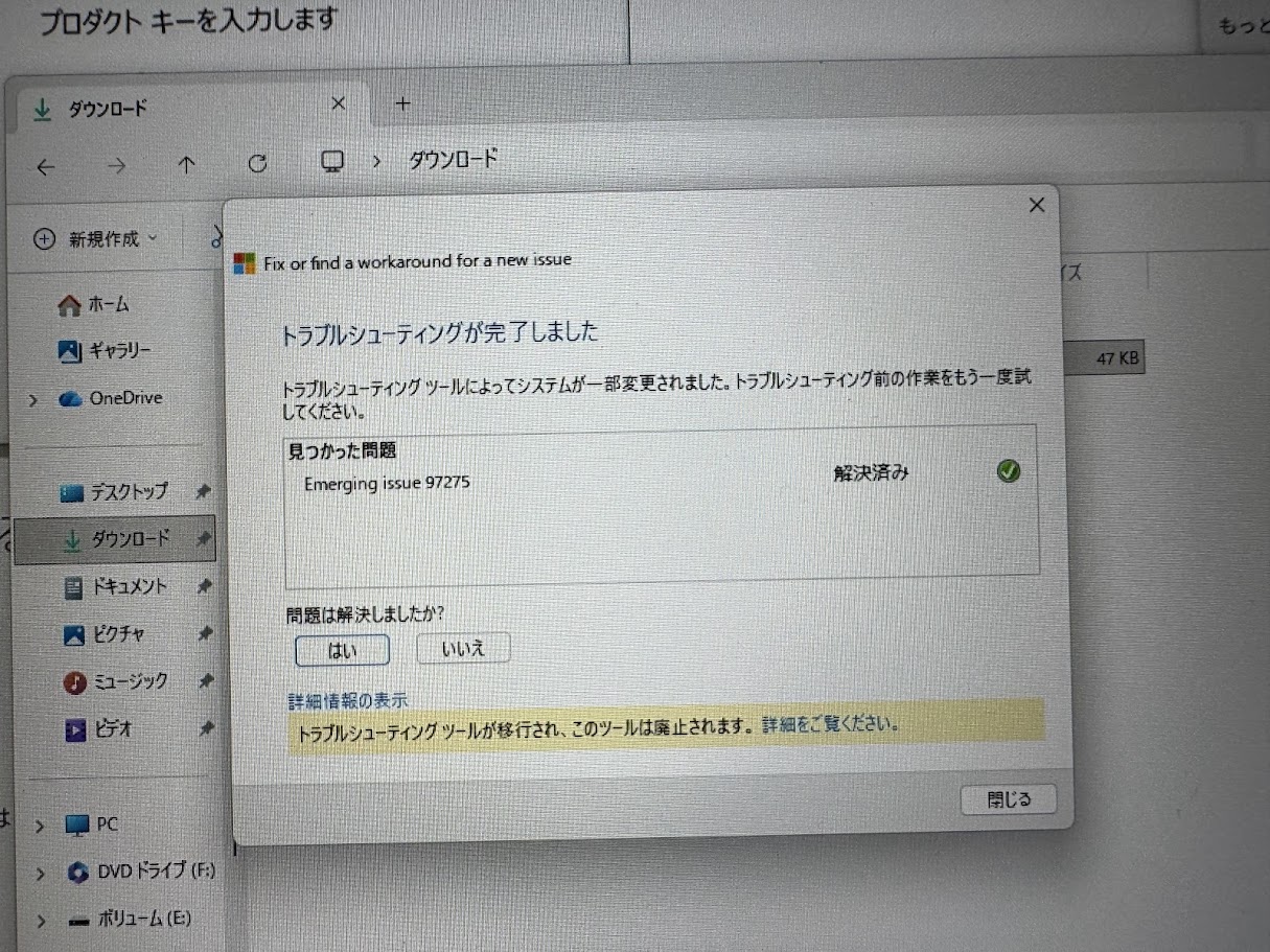 URL: https://officecdn.microsoft.com/db/492350F6-3A01-4F97-B9C0-C7C6DDF67D60/media/ja-JP/HomeBusiness2024Retail.img2.FixItToolの実行