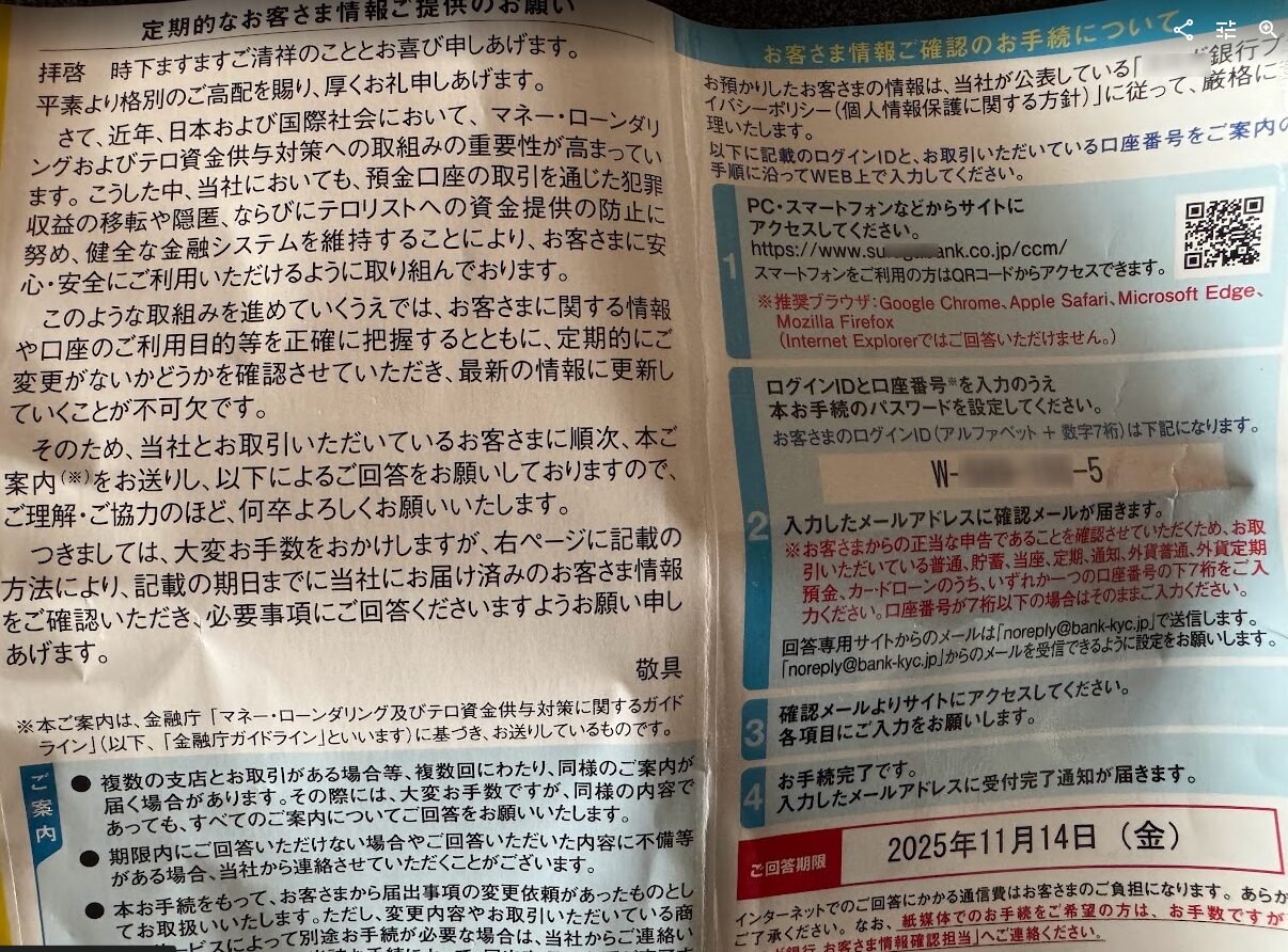 ある日、ネットバンキングから「お客さま情報確認」という郵便物が届いた!